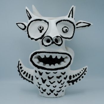Anello Maison Martin Margiela con una biglia di vetro colorata incastrata all’interno di una struttura in ottone. La biglia può roteare su se stessa. All’interno dell’anello è riportato il marchio numerico del brand, con l’11 cerchiato che indica la collezione accessori unisex.