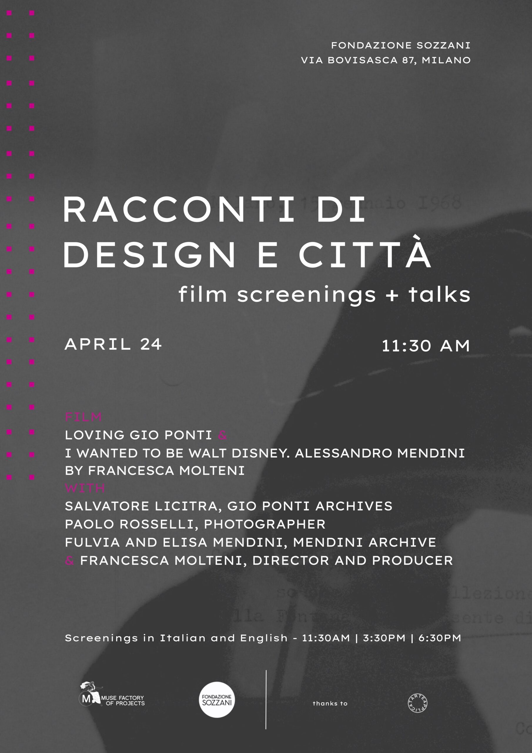 talk + screening | 11:30AM – Milan Premiere*